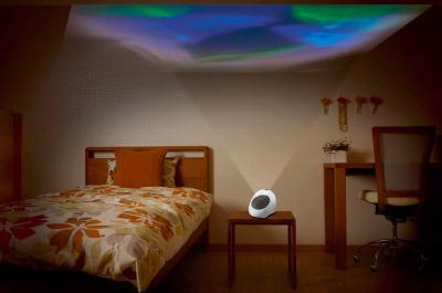 『HOME AURORA』は、本格的なオーロラを投映することができるホームエンターテイメント機器だ。部屋の天井や壁でマルチカラーLEDによる美しいオーロラが楽しめるのである。
